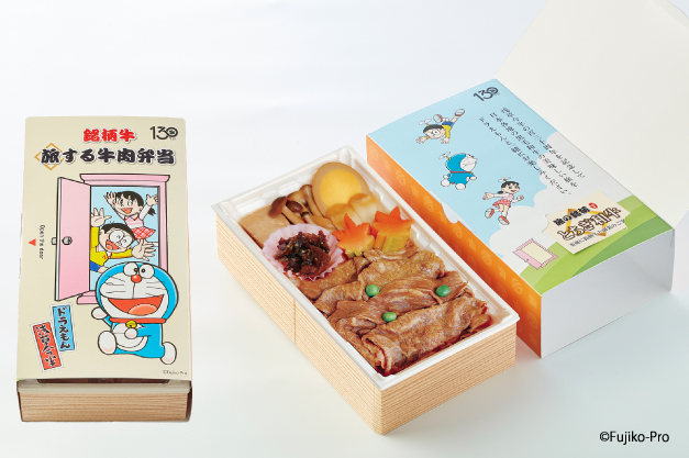 ドラえもんデザインパッケージの創業130周年記念商品「銘柄牛 旅する牛肉弁当」。11月1日(土)からは第7弾として「とちぎ和牛」を使用したお弁当が登場します。