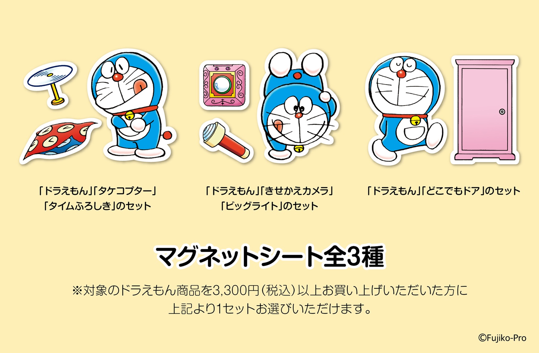 〇内容:対象商品を3,300円以上ご購入につき、「ドラえもん&ひみつ道具 マグネットシート」を1点プレゼント(無くなり次第終了)。